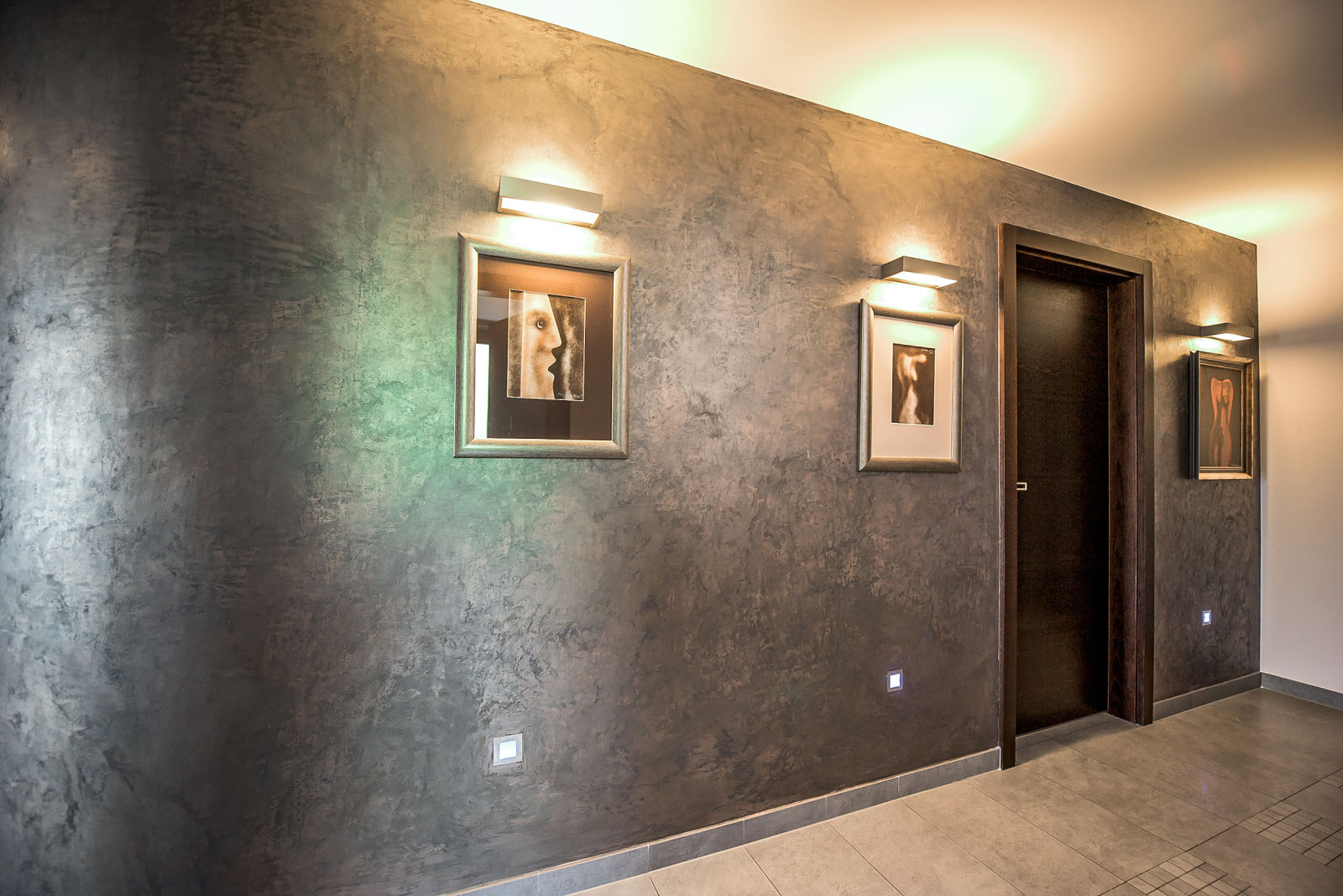 Nejoblíbenější aplikace dekorativních stěrek máme aplikovány přímo na stěnách a v námi vytvořených vzornících. Můžete si tak materiály prohlédnout, osahat a vidět, jak se chovají pod různými úhly.